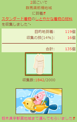 ウサギの飛行イベントは、全国を飛行機で回ってパーツを集めて、料理や洋服などのアイテムの完成をめざすイベントです。
